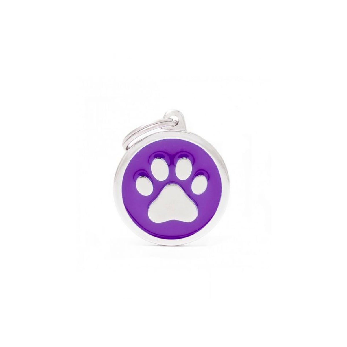 Nuestra Placa Redonda Huella, es un producto perfecto para la identificación de tu mascota. Se graba directamente al reverso de la placa directo en el metal, está plaquita es ideal para gatos y perros pequeños y medianos.