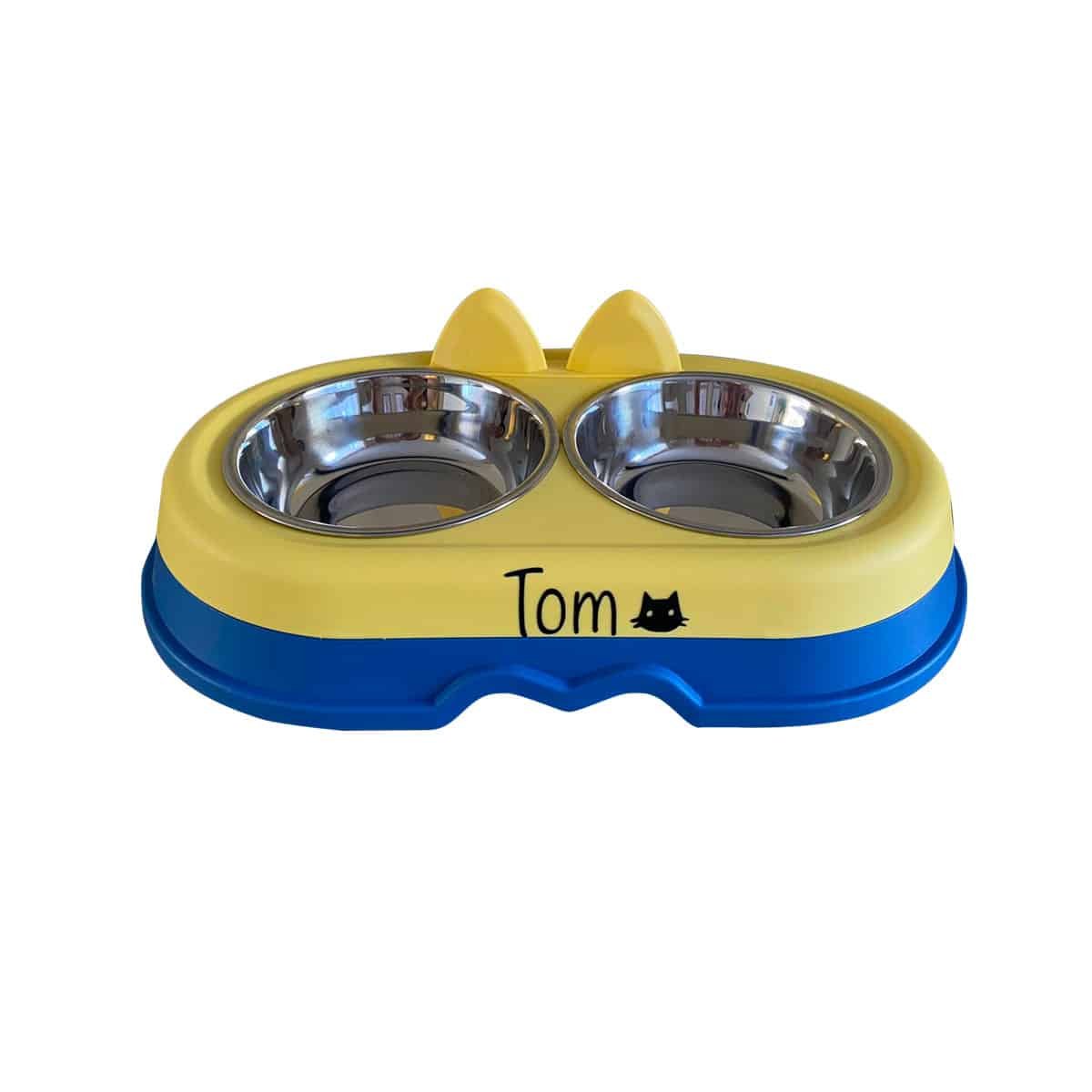 comedero y bebedero con platos de acero inoxidable. Medidas producto : 21 x 37 ancho x 8cm Material: Cubierto de plástico y platos de acero inoxidable. Con gomas Antideslizante